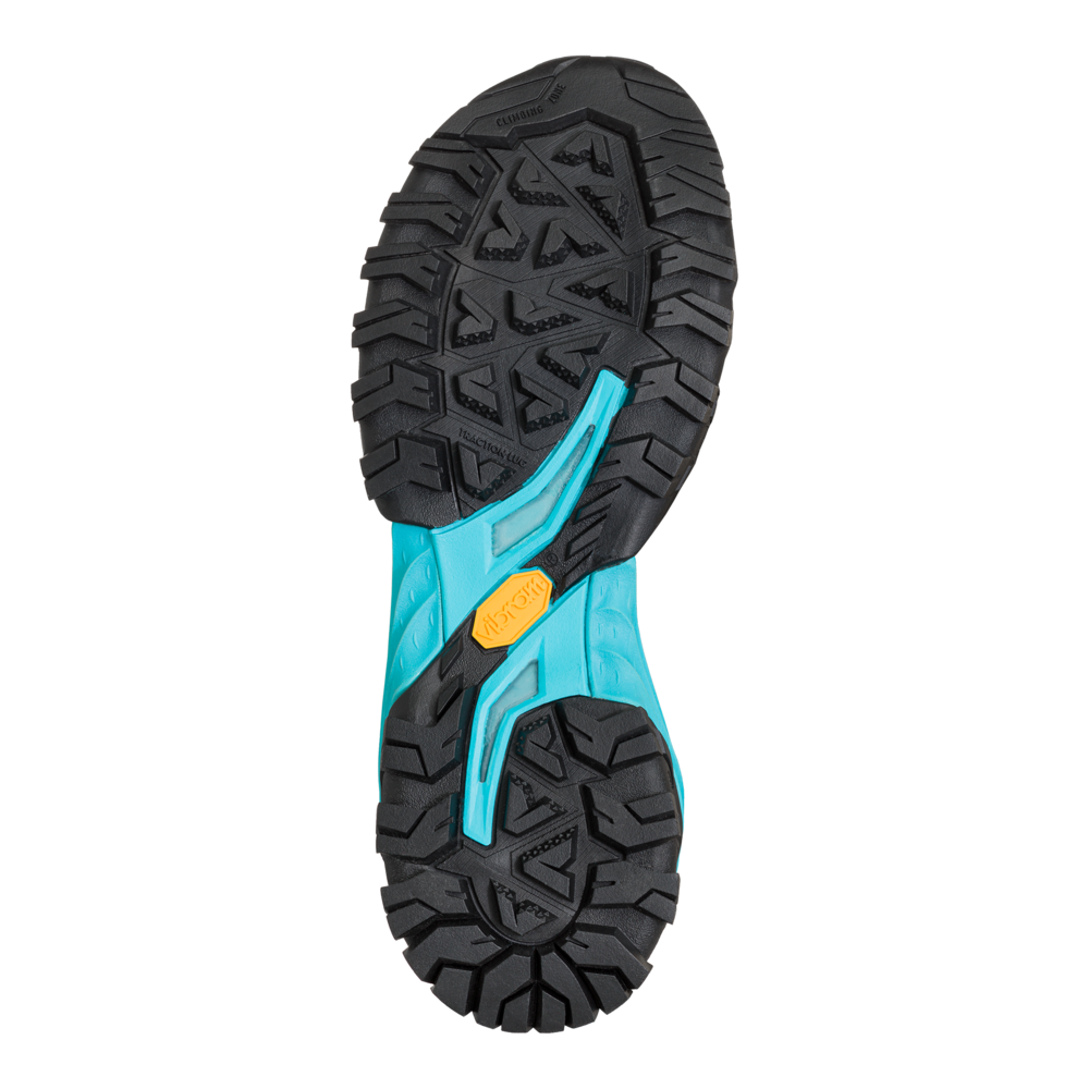 The toe features a climbing zone, ideal for more demanding trails or via ferratas, while the rubber toecap and extended wings on the sole protect the foot and deliver enhanced shock absorption.